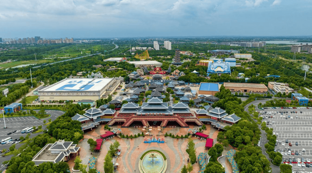 美景亮点:赛道紧邻方特园区,楚韵风格的建筑群落与游乐设施轮廓清晰,传统文化与现代娱乐感碰撞出独特画面。